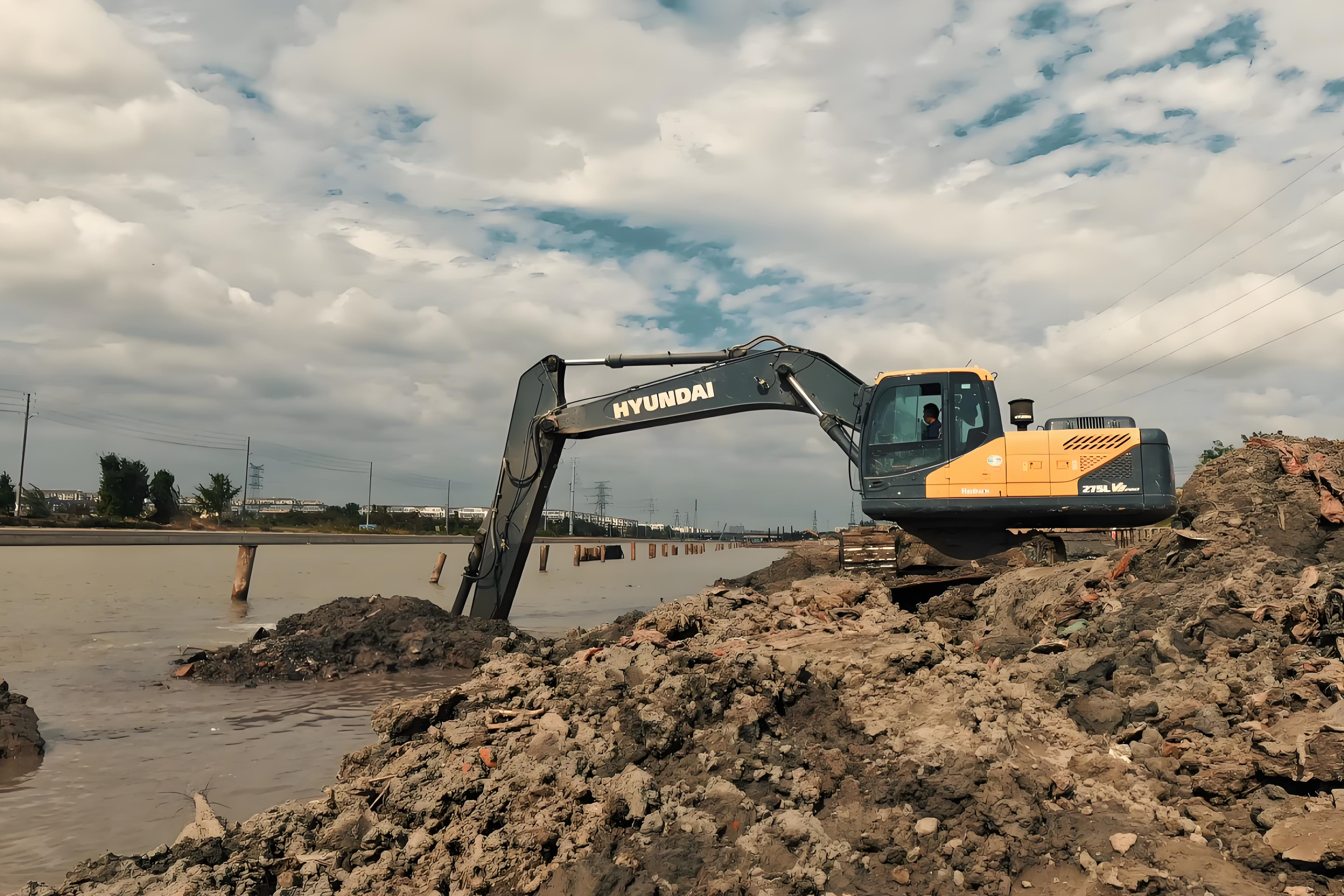 從淤泥情況說,如果是稀泥層,挖機鏟斗一挖就成團,作業(yè)順暢;但要是水下有硬土塊、石頭,甚至廢棄的漁網(wǎng)、鋼筋,就可能卡住鏟斗,得先清理障礙物才能繼續(xù)。